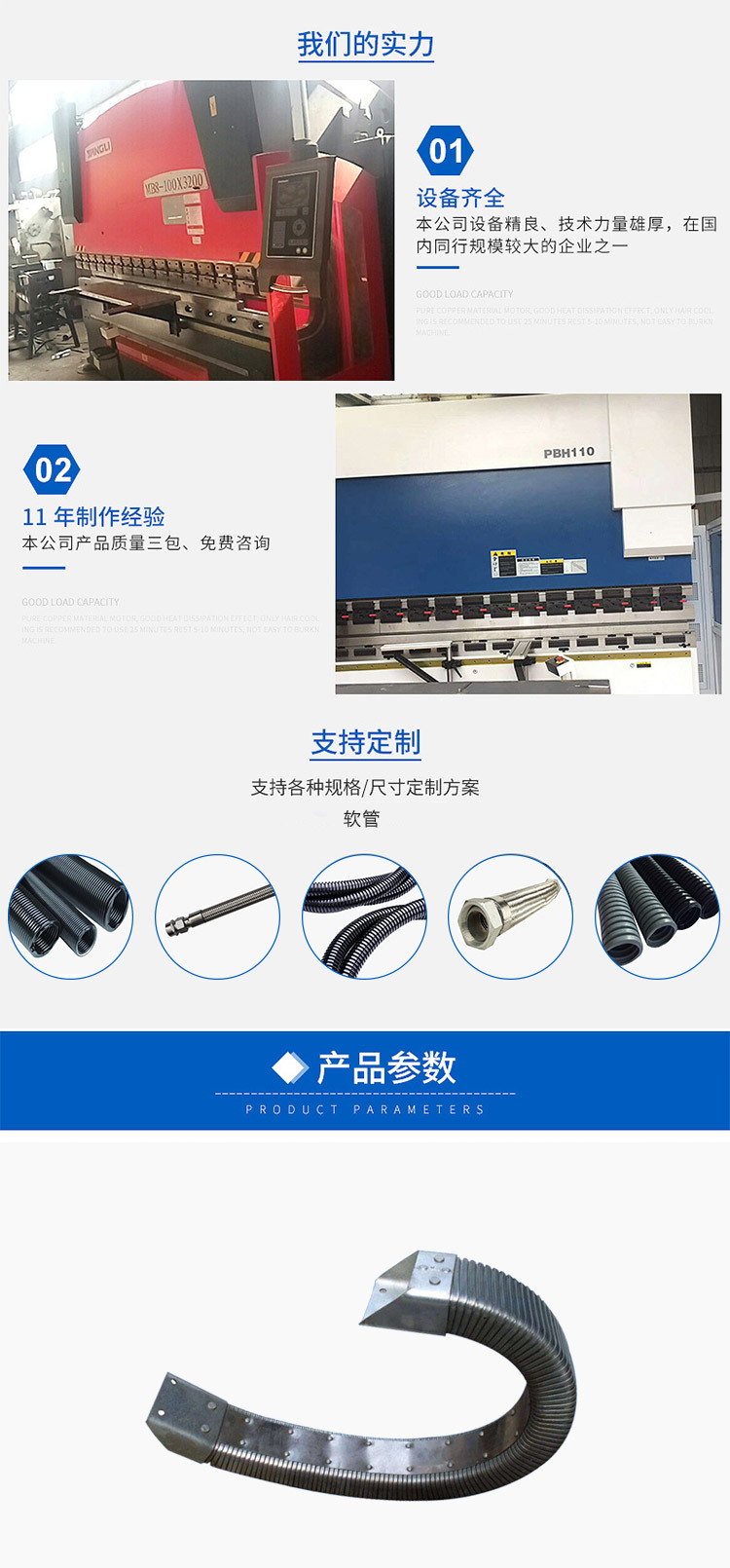 我公司擁有先進的生產(chǎn)設(shè)備和雄厚的科技力量,豐富的生產(chǎn)經(jīng)驗以及嚴格的質(zhì)量管理標準,在國內(nèi)行業(yè)中是規(guī)模較大的企業(yè)。主要產(chǎn)品有:鋼板伸縮式防護罩、新型pvc柔性護罩、風琴式、圓桶式、鎧甲式、卷簾式伸縮護罩、鋁形防護簾、TL橋式鋼鋁拖鏈、橋式全封閉式工程塑料拖鏈、矩形金屬軟管護套、DGT導管護套、螺旋鋼帶護套、機床導軌刮屑板、 T型撞塊槽板、可調(diào)塑料冷卻管、S78系列機床墊鐵等。
